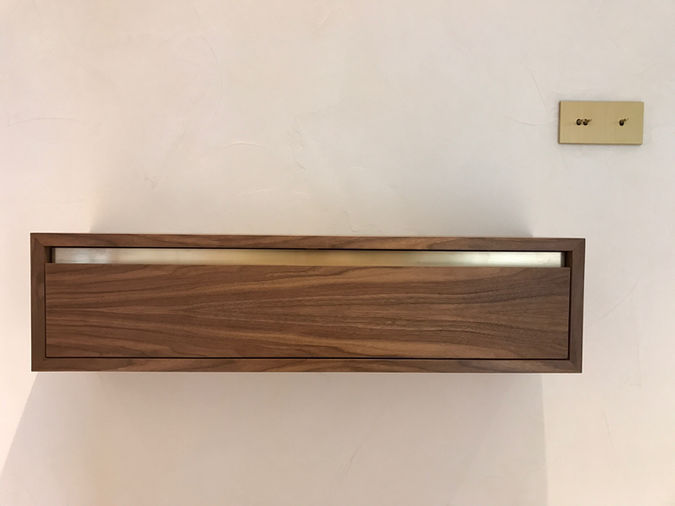 Descriptif : Console d'entrée suspendue intégrant un tiroir ... Tout simplement pour vider ses poches en arrivant à la maison ...
